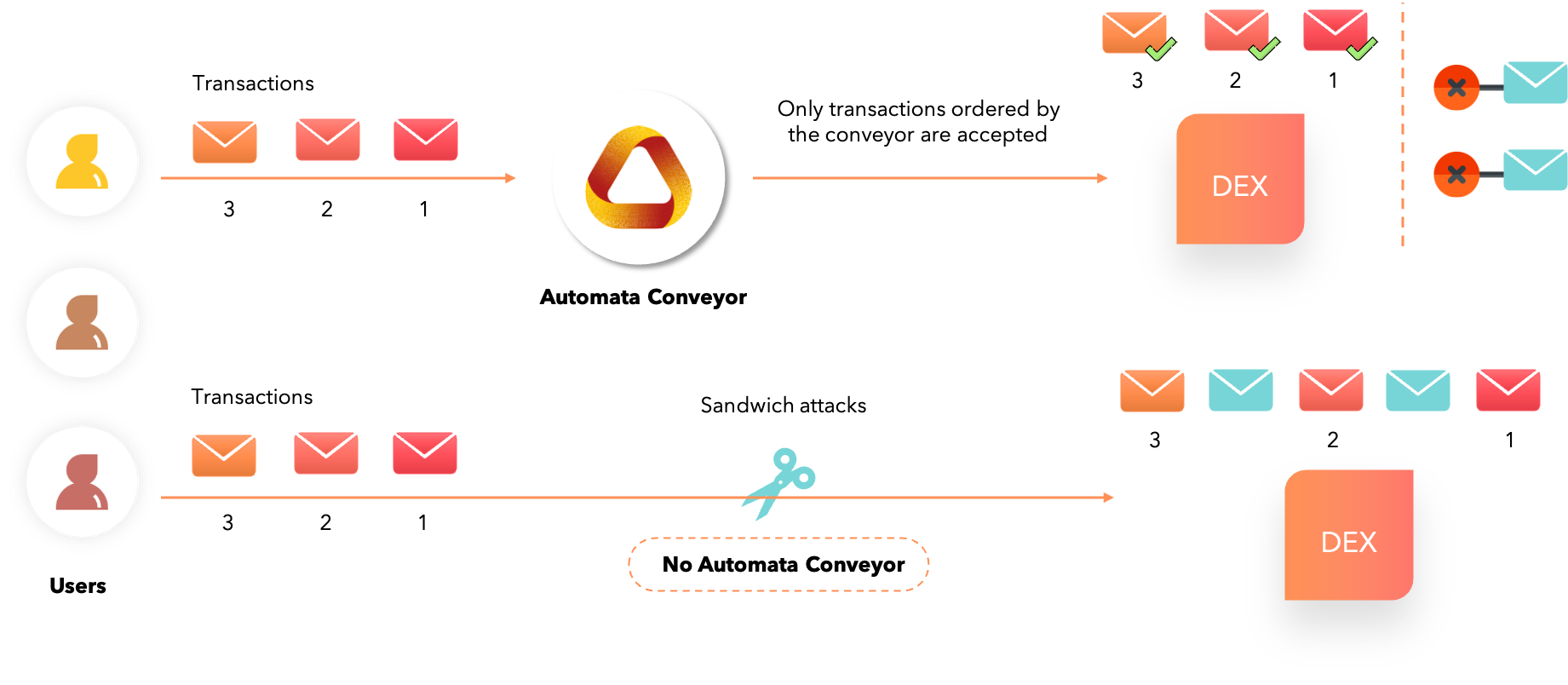 - Ordered transactions from Automata’s Conveyor which is free from transaction reordering and other front-running transactions